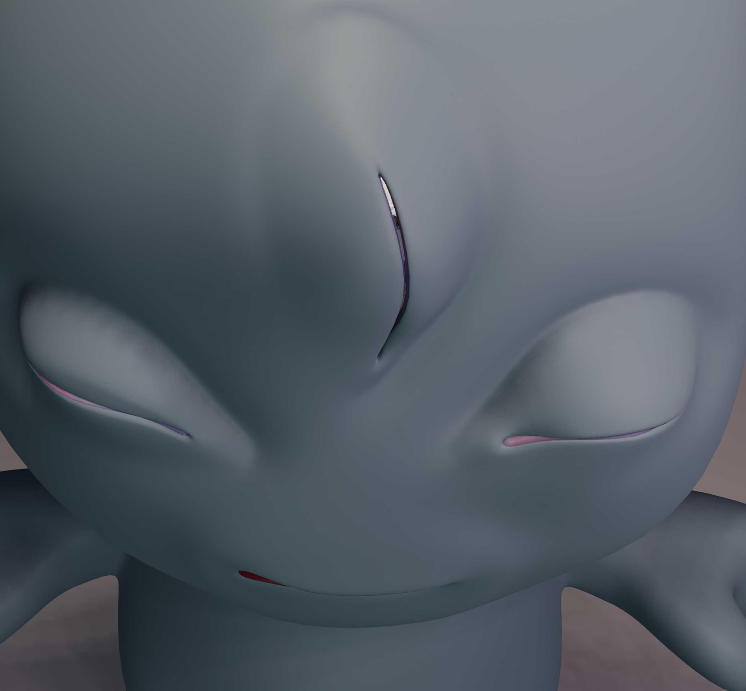 This creature was created from lotus flower drawings I did in my childhood, a flower that to me represents love. Although it looks cute and harmless at first glance, there's something unsettling about it when you get closer. It has a soft, round body, a big head, and short limbs, but also features like razor-sharp teeth, a big consuming mouth, and three eyes. This monster exists in the real world, it has an understanding of the real world.